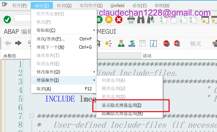 REPORT Z_FIND_ENHANCEMENT NO STANDARD PAGE HEADING MESSAGE-ID zhuxy LINE-COUNT 65 LINE-SIZE 120.